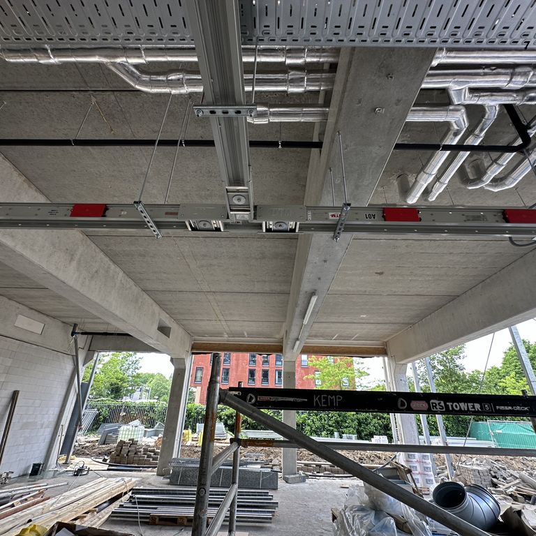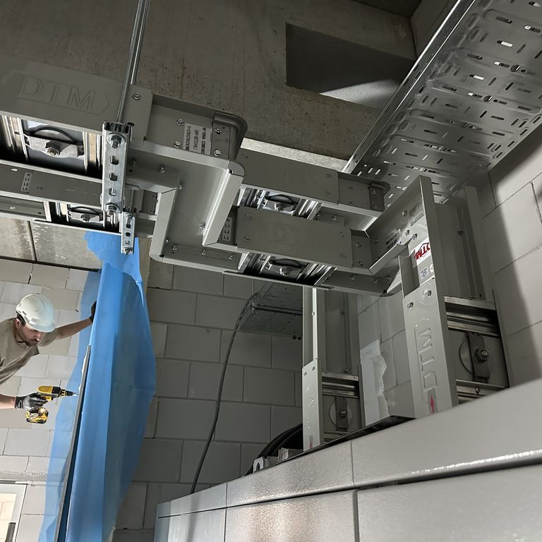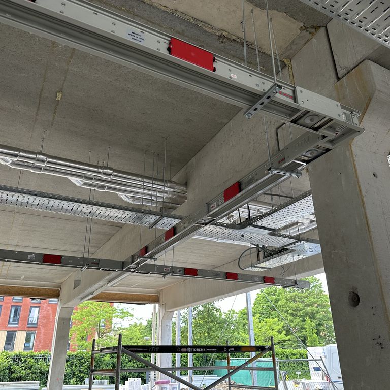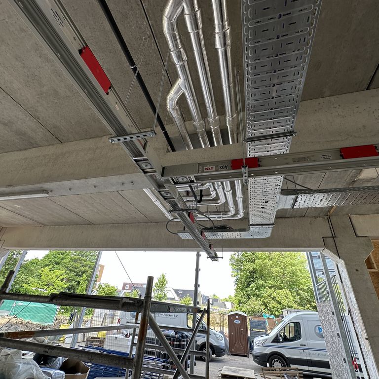 Daarnaast is een verticale railkokerlijn geïnstalleerd om de verdelers op alle verdiepingen van energie te voorzien. Hierdoor ontstaat een efficiënte en overzichtelijke verdeling van stroom door het gehele gebouw.
