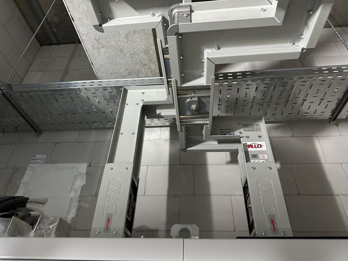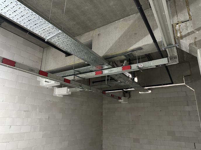 Ter ondersteuning van de installatie heeft Etépro ook kabeldraagsystemen geleverd en gemonteerd, waaronder kabelladders en kabelgoten met scheidingsschotten voor een veilige en overzichtelijke aanleg van voedings- en datakabels.